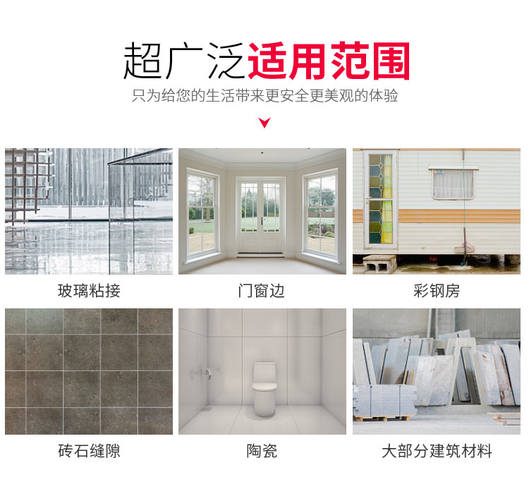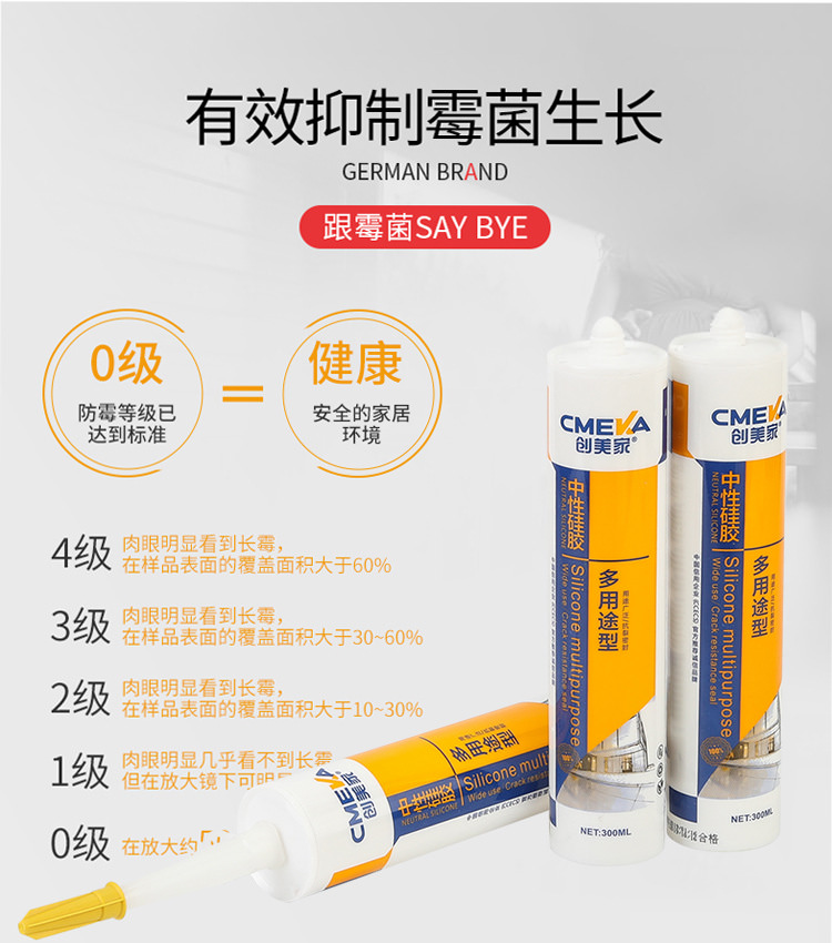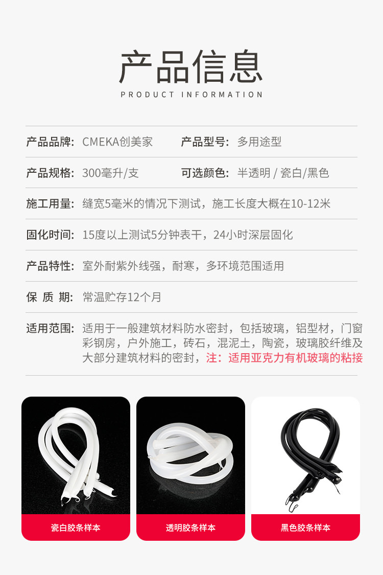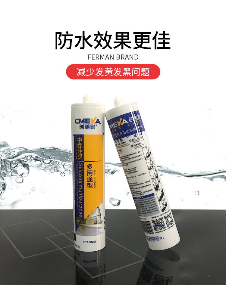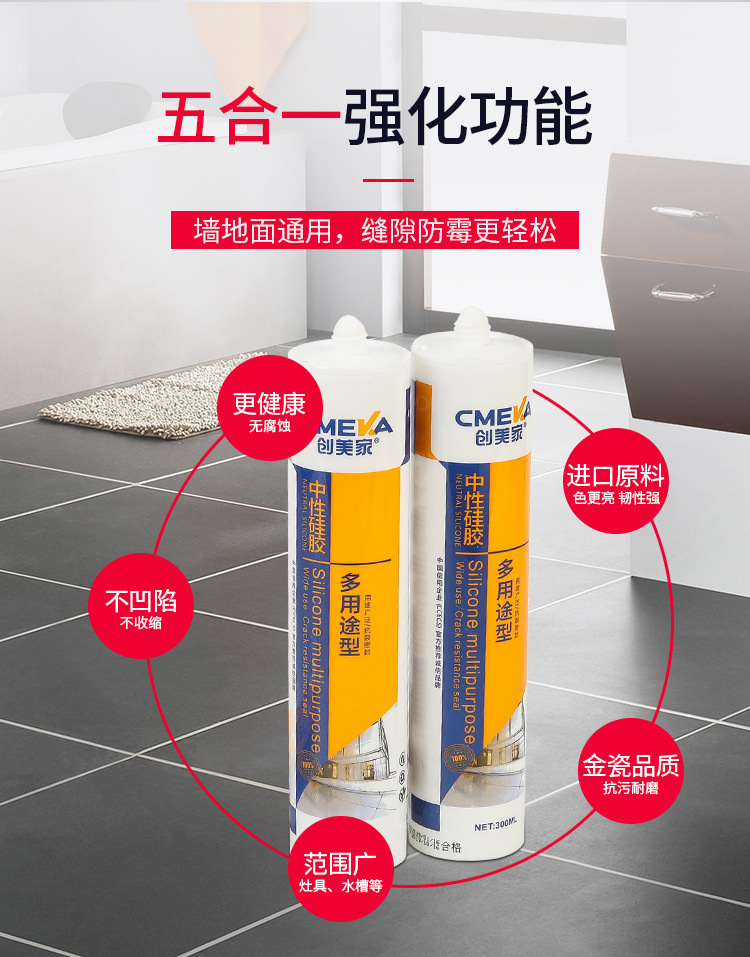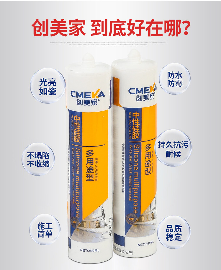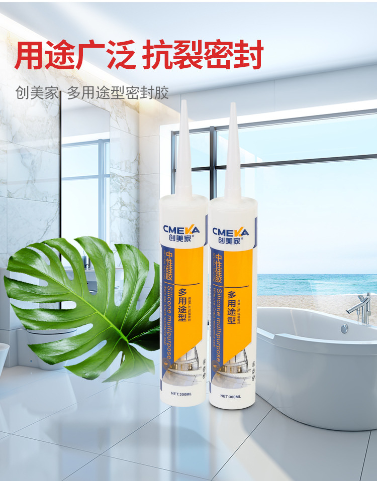 1、創美家-多用途系單組份、中性脫醇型、高模量、室溫固化硅酮密封膠。